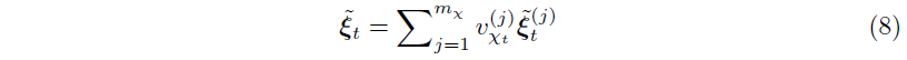이렇게 얻어진 $\widetilde{\xi}_t^{(j)}$는 variable $j$에 대한 processed feature vector이다. 각 variable은 모든 time step $t$에 적응되는 고유의 $GRN_{\xi(j)}$를 갖게 된다. 이렇게 얻어진 processed feature를 앞에서 구한 variable selection weight과 결합하면 다음의 식을 얻을 수 있다.